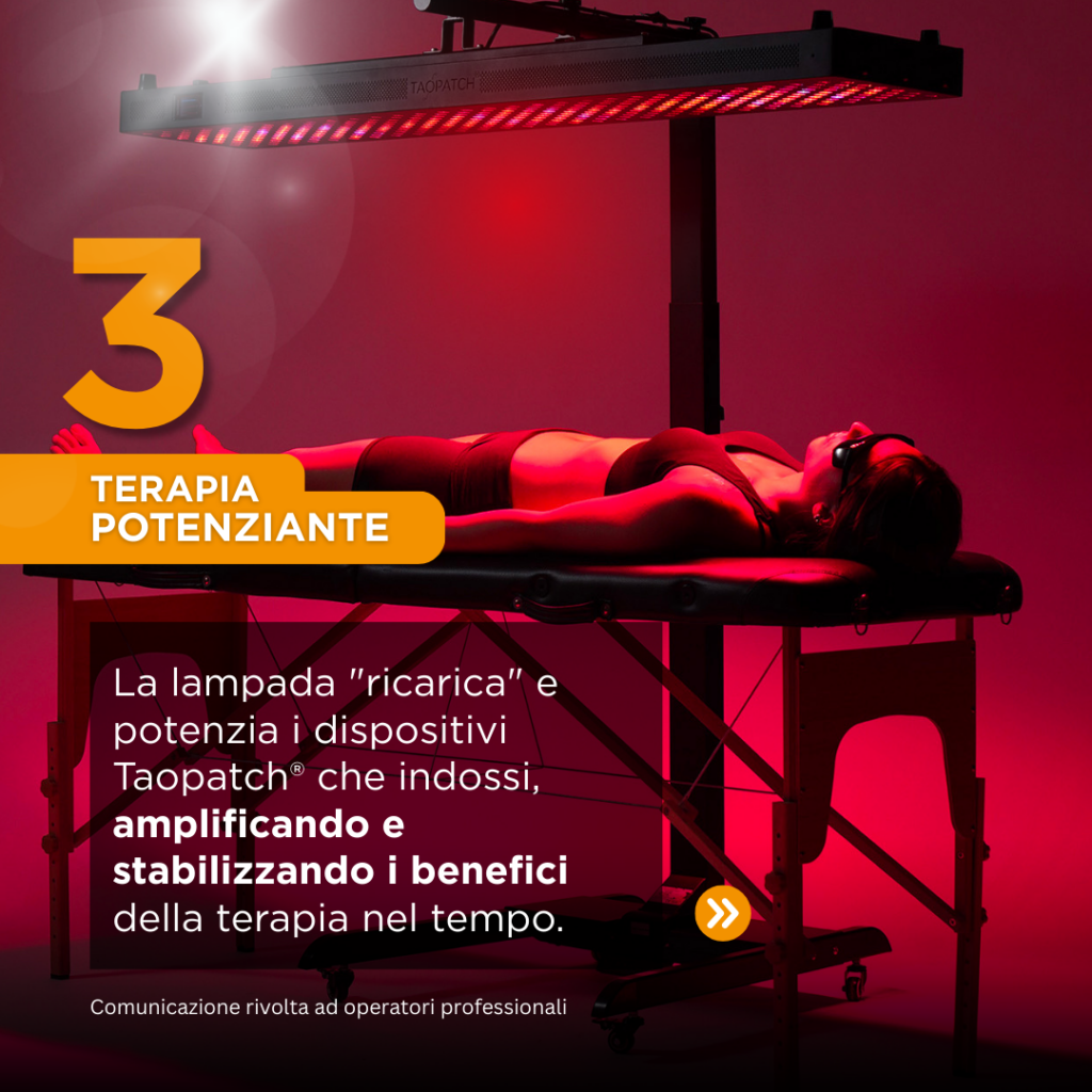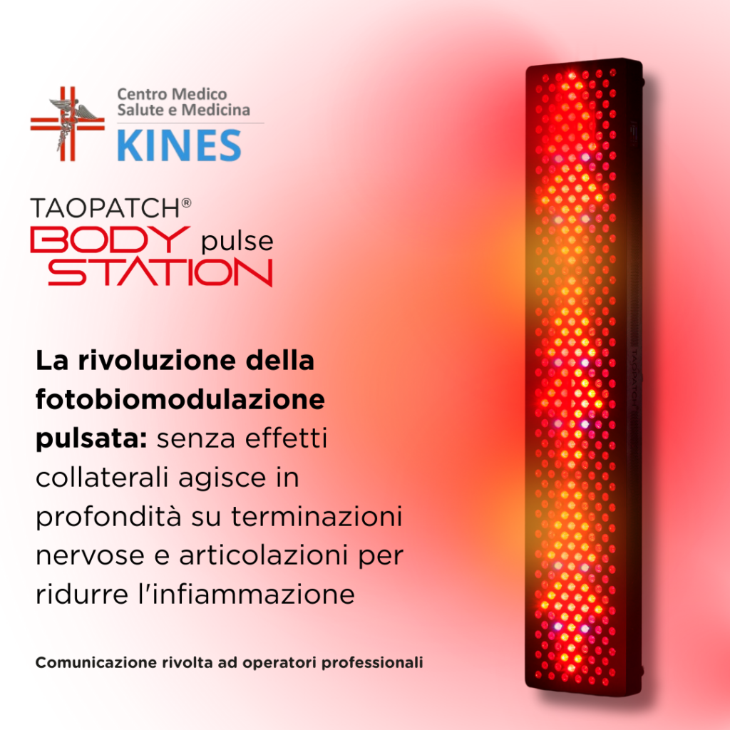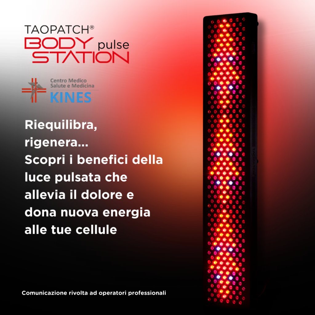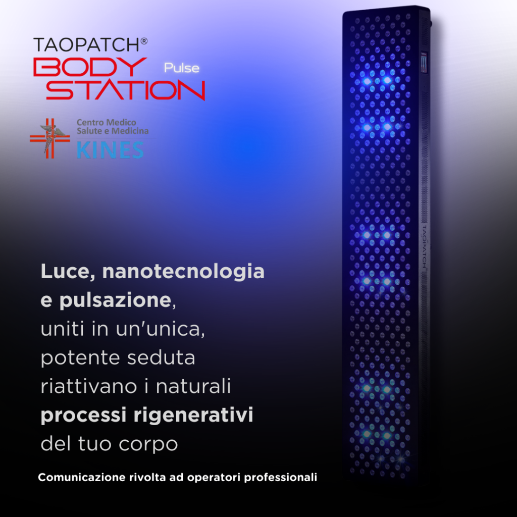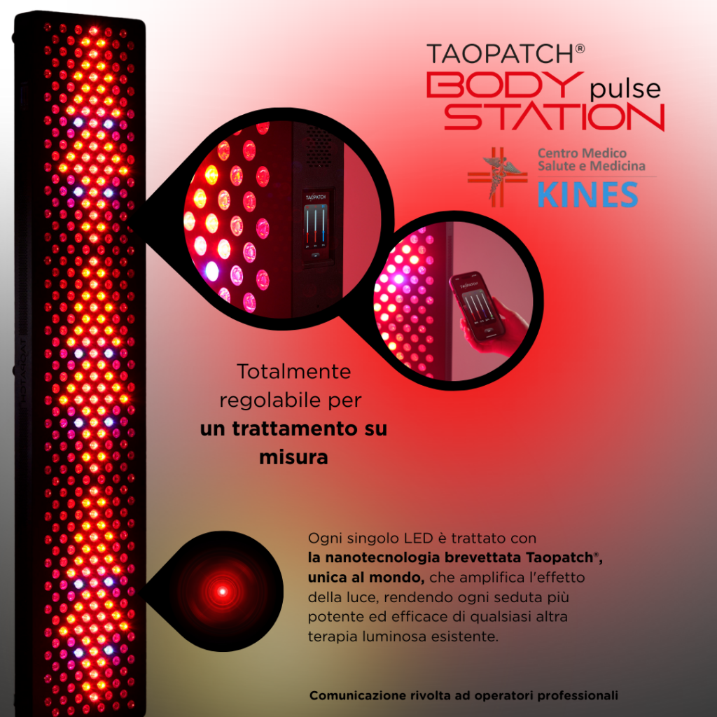 La Taopatch® BODY STATION del Centro Kines a Castano Primo rappresenta una vera rivoluzione nella fotobiomodulazione pulsata. Senza effetti collaterali, agisce in profondità su terminazioni nervose e articolazioni contribuendo a ridurre l’infiammazione cronica. La stimolazione luminosa coerente favorisce equilibrio energetico e recupero funzionale. È un approccio non invasivo che sostiene i naturali meccanismi del corpo senza sovraccaricarlo. Presso il Centro Kines a Castano Primo la tecnologia si integra con competenza clinica e visione globale della salute. L’obiettivo è offrire una terapia efficace, sicura e orientata al lungo periodo.